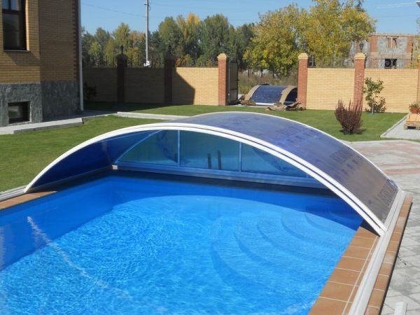 Кусками поликарбоната хорошо закрывать маленький пруд или бассейн. Так в него будет попадать меньше мусора и листьев, а вода лучше прогреется солнцем.