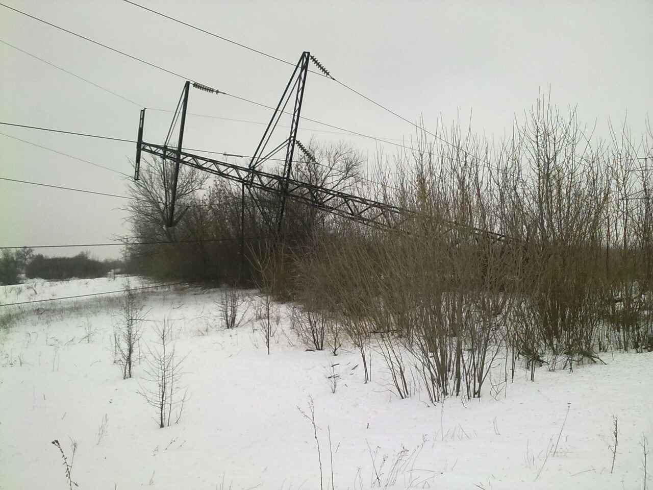 Пророссийский журналист Виктория Толкочева в своем твиттере опубликовала фотографии ЛЭП, предположительно, взорванных под Светлодарском.