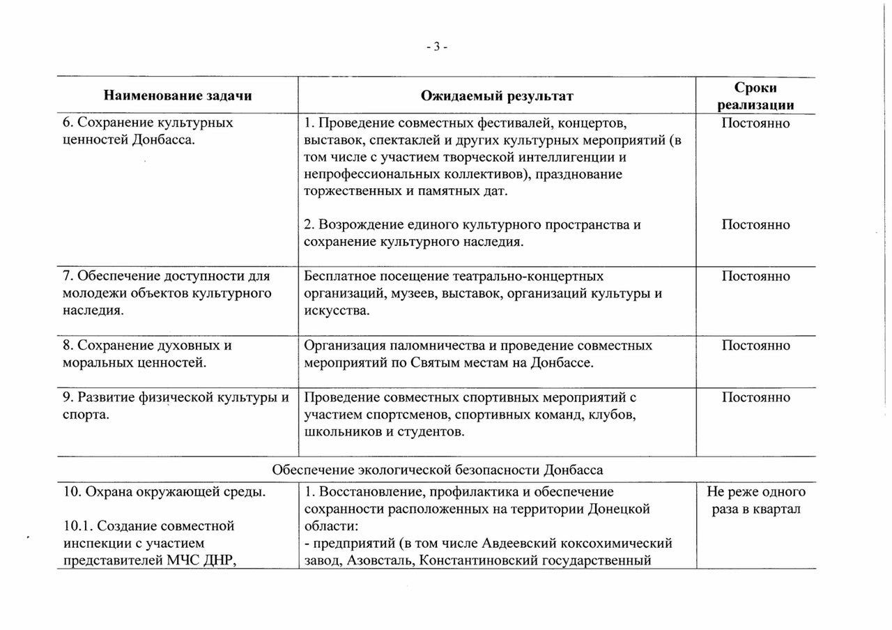 Доступ представителям сепаратистов на эти объекты должен предоставляться не реже одного раза в квартал в рамках совместных инспекций с МЧС ДНР, общественными и международными организациями. В программе также указывается на необходимость предоставления доступа в область гуманитарных организаций ДНР и рекомендованных ДНР международных организаций.