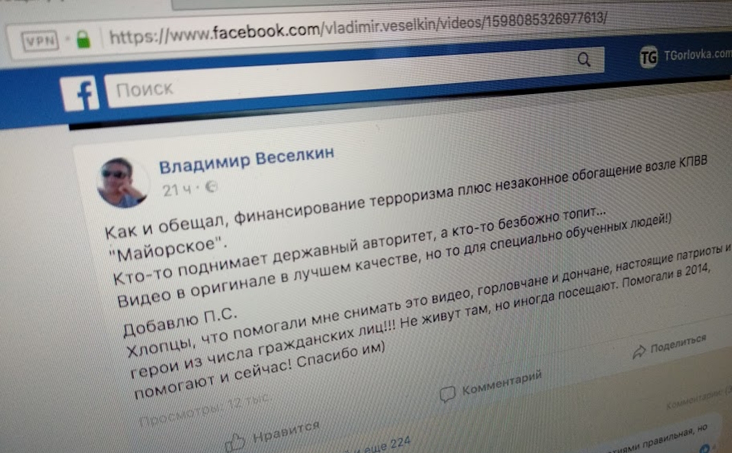 В видео Веселкин заявляет, что к схеме незаконных поставок товаров на неподконтрольную правительству Украины территорию причастны некоторые областные и местные чиновники. В частности, он обращает внимание на первого заместителя губернатора Донецкой области Виктора Ремского.