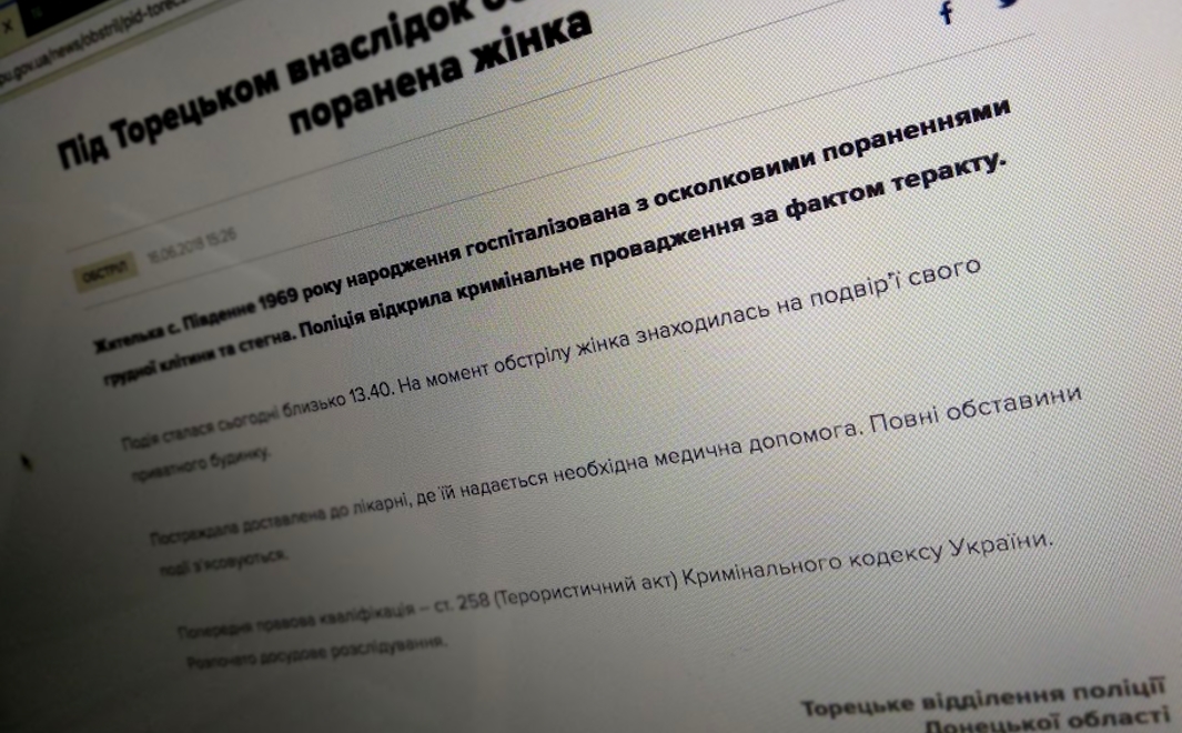 «Происшествие произошло около 13:40 [16 июня]. На момент обстрела женщина находилась во дворе своего частного дома. […] Полиция открыла уголовное производство по факту теракта», — заявили в пресс-службе украинской полиции.