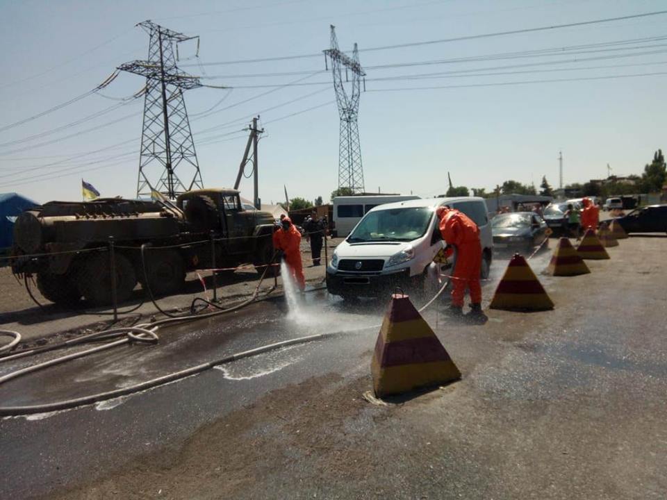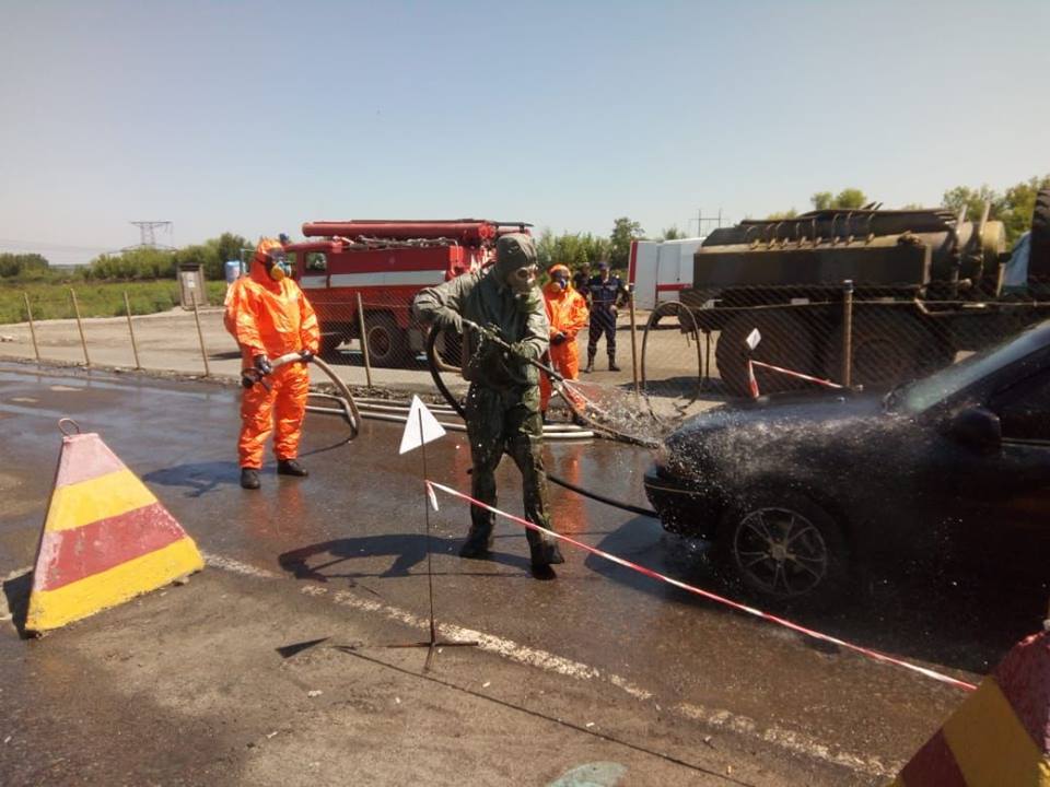 «Во время обучения участники отрабатывали вопросы проведения радиационного контроля граждан и транспортных средств, пересекающих КПВВ и порядок совместных действий в случае обнаружения радиационного загрязнения транспортных средств, а также тренировались проводить их дезактивацию (удаление радиоактивных частиц с поверхности — прим. TGorlovka)», — сообщили там.