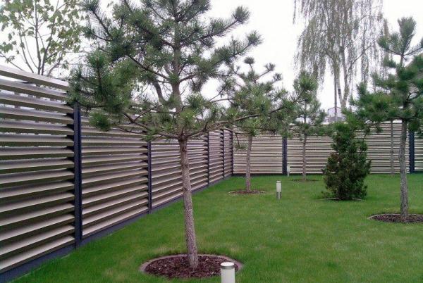 Что касается норм пожарной безопасности, для негорючих материалов расстояние от строений до забора должно быть не меньше 6 м. Если имеются деревянные перекрытия с защитной пропиткой, расстояние должно быть от 8 м. Если древесина и каркасные сооружения не имеют защиты, минимальный зазор — 10 м. Также согласно санитарным нормам, любой забор должен стоять на расстоянии 3 м от жилых домов, 4 м от построек для содержания домашних животных, в 1 м от кустарника, 2 м от деревьев среднего размера и 4 м от высоких деревьев.
