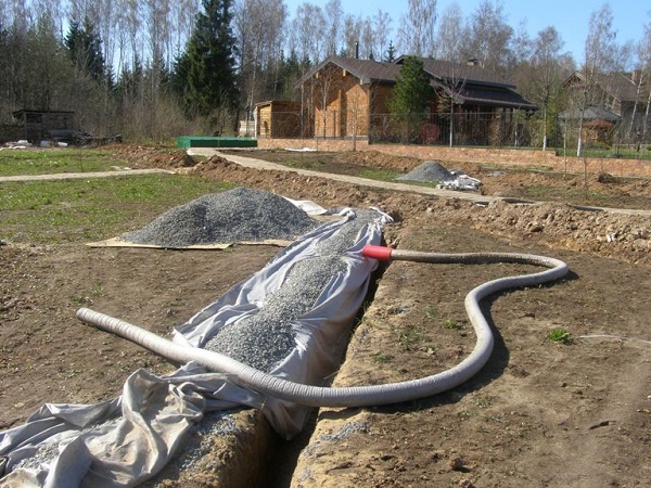 Поэтому в любом случае придется проводить дренажные работы. Для этого роются дренажные каналы, позволяющие отвести лишнюю воду с участка.