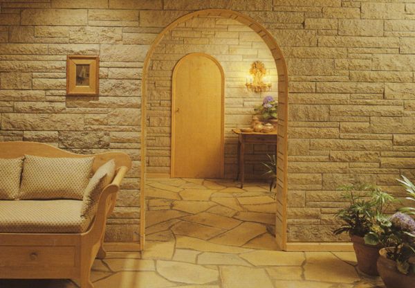Хорошей альтернативой натуральному камню станет искусственный. Современные технологии его производства позволяют получить материал, который имеет схожие характеристики с мрамором, гранитом или другой ценной породой. Большим преимуществом является то, что он имеет небольшой вес, а потому монтаж искусственного камня отличается легкостью.