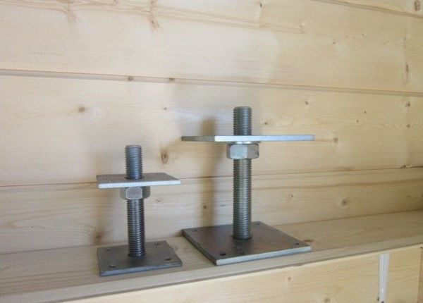 Компенсатор усадки, или, как его еще называют, регулировочный лифт – простой узел, состоящий из нескольких частей – опорной и ответной. Между ними находится анкер с резьбой. Путем вращения анкера регулируют высоту расположения конструктивных элементов дома.