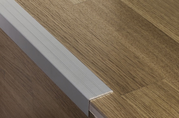 Когда владелец дома решает своими руками установить порожек лестницы, обычно выбирается угловой профиль из алюминия, латуни либо стали и монтируется это, когда вся лестница уже готова. При этом покупая материалы, нужно быть особенно внимательным — хорошо осмотреть, насколько качественно выполнены отверстия в профиле, так как сделать точно такие же в домашних условиях будет невозможно, разница между фабричным сверлением и домашним будет очевидна. Кроме того, нужно убедиться в том, что имеется вся необходимая фурнитура. После разметки нужно быть готовым к тому, что в ход пойдёт ножовка по металлу, а лучше болгарка, которыми нужно будет срезать необходимые фрагменты. Также потребуется наждачная бумага либо шлифмашинка, которая избавит материал от заусенцев и сделает поверхность гладкой. Кроме того, потребуется дрель или шуруповёрт, чтобы просверлить в ступенях отверстия.