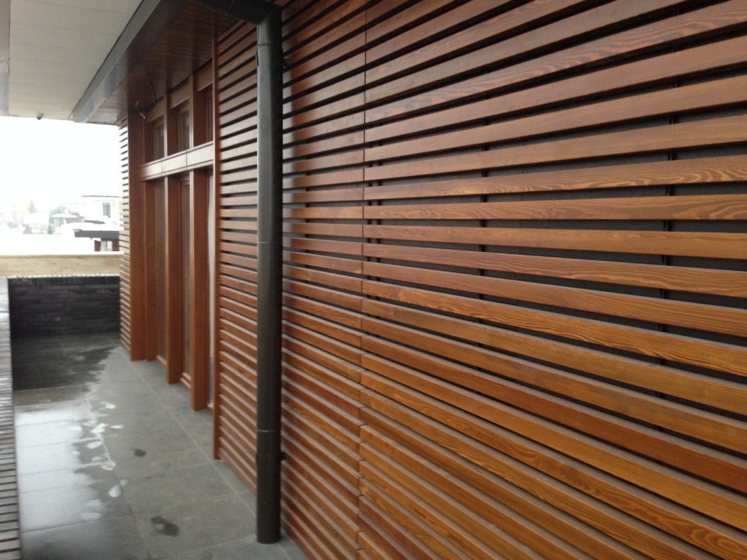 Наличие на внешней отделке дома деревянных деталей требует особого ухода. При попадании на дерево солнечных лучей, оно постепенно выгорает. Это под воздействием ультрафиолетовых лучей разрушается лигнин – вещество, влияющее на цвет и прочность дерева. Выгорая, оно теряет свой природный цвет, становится шероховатым, могут появиться трещины, грибок. Для предотвращения этого применяются традиционные методы обработки деревянных конструкций. Это обработка деревянных деталей морилкой, которая придает дереву определенный декор и покрытие лаком для защиты дерева от влаги.