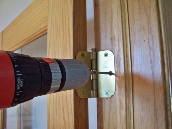- Проблема может заключаться в дверных петлях, а именно в их расшатывании или слабом закреплении. В этом случае требуется плотнее завернуть саморезы, крепящие петли, или дополнительно усилить отверстия под петли деревянными штапиками. Если петли слабы для фактического веса двери, — смените их на новые. Если саморезы подвернуть не получается из-за разбитых отверстий, попробуйте использовать крепёж большего размера. Если и этот совет не помогает, — переставьте петли на новое место.