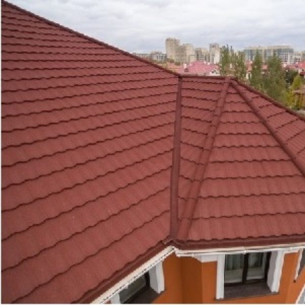 Данный материал по своему внешнему виду имеет сходства с дорогостоящей керамической черепицей. Он изготовлен из стального листа, поверх которого нанесено цинковое и полимерное покрытие. Лист металлочерепицы весит не большего пяти килограмм и при его монтаже редко возникают трудности.