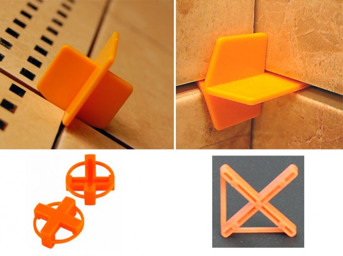 - Использование специальных крестиков, изготовленных из пластика. Преимущество такого способа заключается в том, что крестики делают уровень плитки ровным по горизонтали и по вертикали. Также размер швов с их использованием остается всегда одинаковым. При кладке плитки данные крестики ставятся таким образом, чтобы их потом можно было легко удалить. Суммарное количество таких крестиков может достигать от 35 до 130, на 1 квадратный метр.