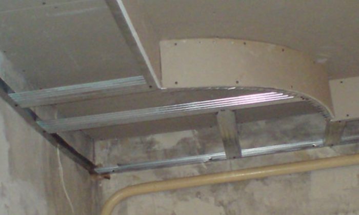 - Когда разметка готова можно приступать к формированию каркаса. Стоит понимать, что при установке основного профиля ширина шага должна быть не более 60 см. иногда ко проекту линии изготавливаемой конструкции делаются с изгибами, в таком случае вам придется поработать ножницами по металлу, чтобы придать профилю необходимую форму.