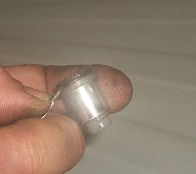 3) Вытащите втулку. Для этой цели нужно воспользоваться ножом. Также подойдёт плоская отвёртка.
