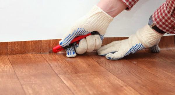 Чтобы работа продвигалась быстрее, а покрытие ложилось аккуратно, линолеум нужно заранее нарезать на куски. Для этого измерьте периметр помещения, в котором будет проводиться укладка и перенесите мерки на полотно. После того, как линолеум будет разрезан на оптимальные части, ровно разложите материал на полу лицевой стороной вверх, чтобы избежать случайных потертостей и царапин. После того, как листы покрытия отлежатся на полу, они будут более податливыми при монтаже.
