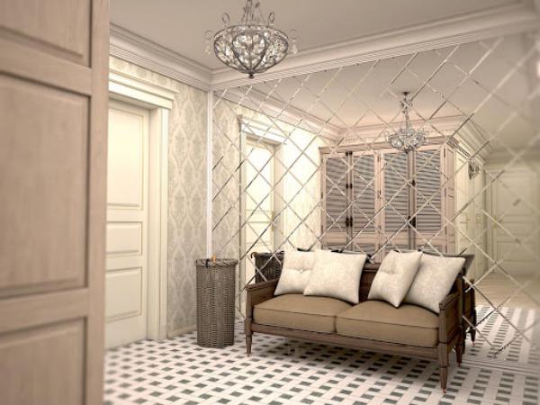 Удвоить пространство самостоятельно можно и с помощью зеркальной стены. Это может быть мебель, облицованная зеркалами, скрытая дверь или полностью стена. При помощи этого приема комната увеличивается в несколько раз, так как кажется, что там дальше есть продолжение.