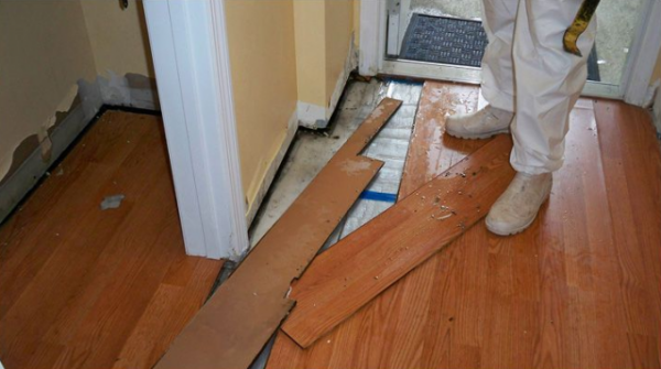 Далее нужно смотреть на материал чернового пола под ламинатом. Если покрытие было смонтировано на дереве, лежащем на лагах, то можно обойтись и без демонтирования: при небольшом затоплении вода высохнет, а подложка пострадает несильно.