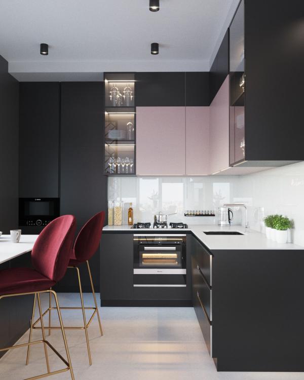 Темный цвет вносит в интерьер новизну, элемент роскоши и богатства.Но такое решение в кухне необычно и непривычно для большинства. Оно для смелых экспериментаторов, которые привыкли быть на шаг впереди других и выигрывать от этого.