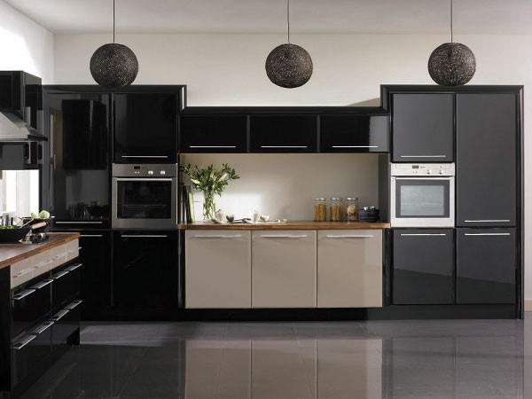 Чаще всего темные кухни применяют в современных интерьерах. В строгом и сдержанном стиле хай-тек эффектно смотрится черно-белая мебель.