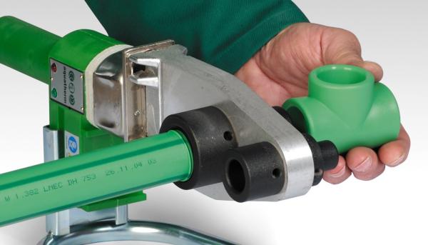 Муфтовая спайка используется при установке отопления и водопровода в домашних условиях с использованием труб диаметром до 63 мм.