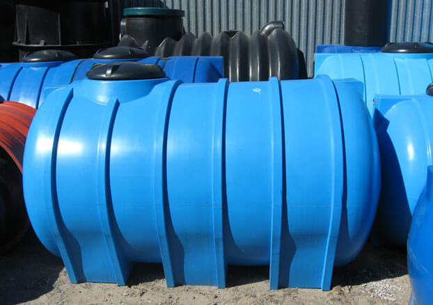 Для сбора сточных вод можно подобрать резервуары разного объема. От объема будет зависеть и диаметр и длина. Если вам нужен бак диаметром на 2000 литров, то параметры будут такие: диаметр 1100 мм, длина — 2100 мм. Чем больше накопительная емкость, тем выше будет ее стоимость. Сами по себе они представляют герметичный цилиндрический резервуар, который устанавливается на приусадебной территории. Материал изготовления может быть разный. Чаще всего все изделия основаны на применении пластика. Самый практичный вариант – это стеклопластик. Он обладает такими преимуществами: