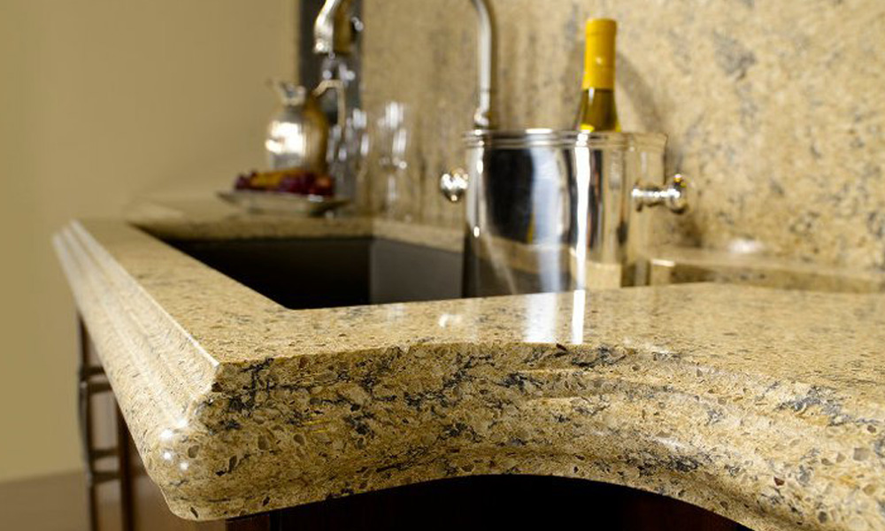 Кварцевый агломерат также часто используется для изготовления столешниц. По техническим характеристикам этот материал превосходит акриловый камень.
