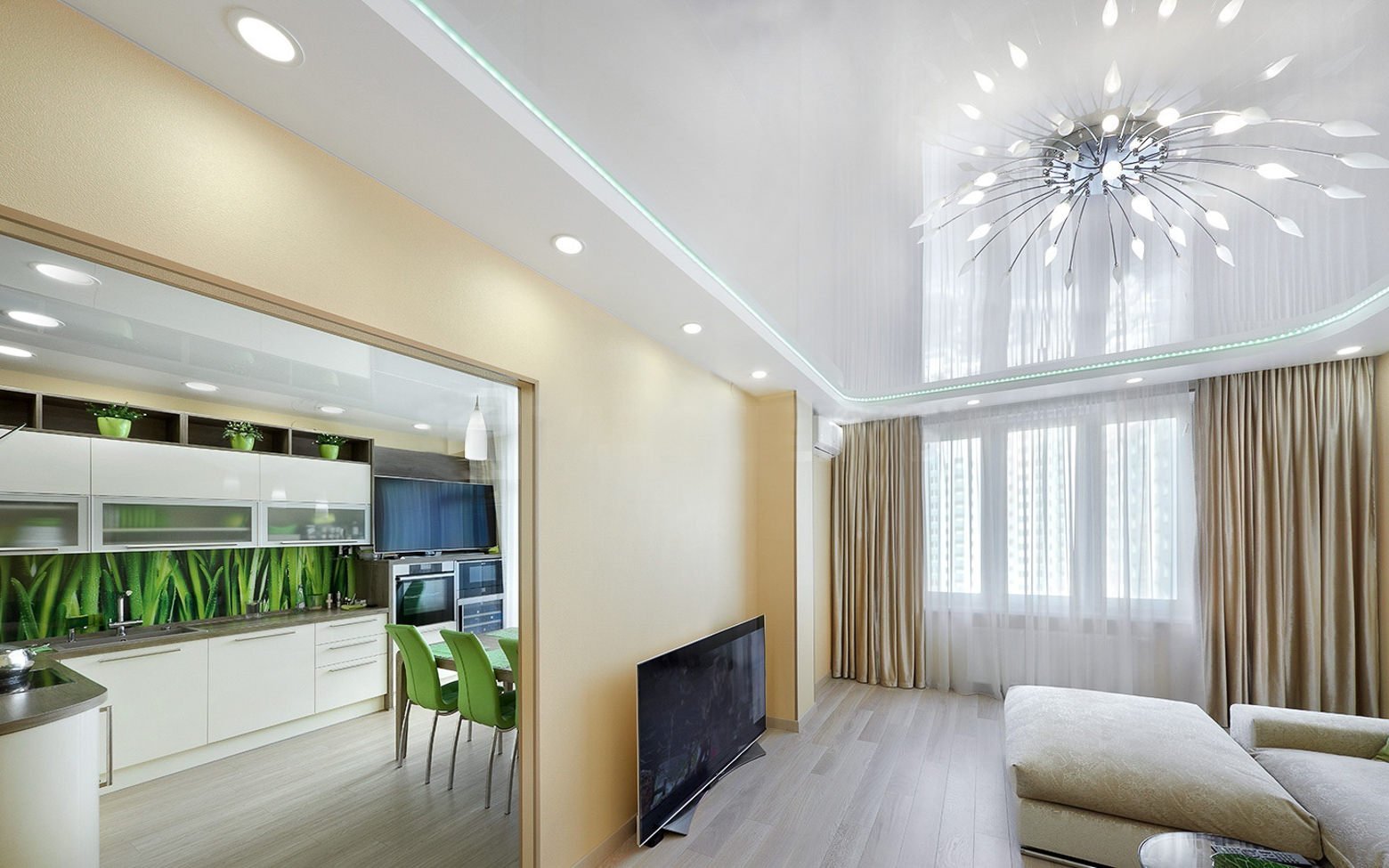 Натяжной потолок – современный отделочный материал, который используется для оформления коммерческих помещений, дома и так далее. Он может быть матовым и глянцевым. К достоинствам натяжных потолков можно отнести: