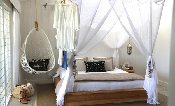 Балдахин в интерьере современной спальни –элемент декора. Защитная функция полога от насекомых, ветра и солнца несколько надуманная. Для этого есть шторы