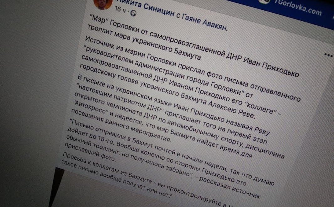 Мэр Горловки Иван Приходько отправил главе Бахмутского городского совета Алексею Реве официальное приглашение на первый этап Чемпионата ДНР по автоспорту.