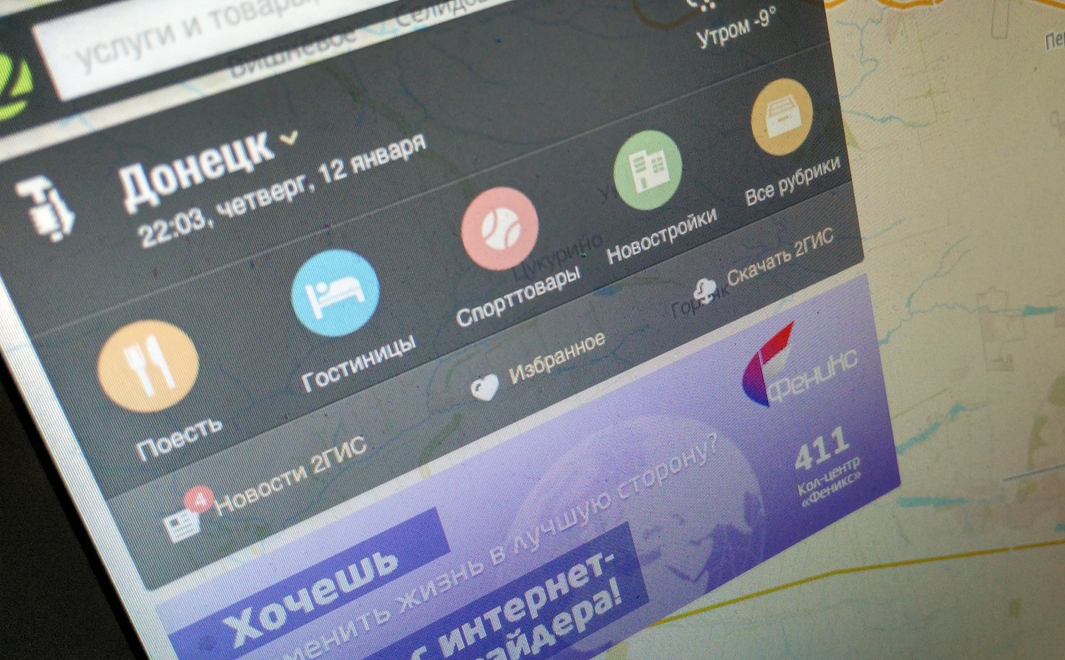 Картографический сервис 2ГИС родом из России разместил на своих картах Донецка названия органов власти самопровозглашенной ДНР. На это обратили внимание