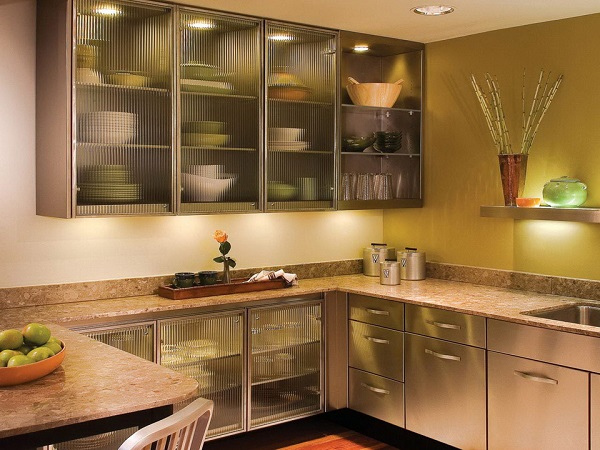 Кухонная мебель с прозрачными стеклянными фасадами, очень красиво и изящно смотрится. Она была актуальна в недавнем прошлом и довольно популярна в наше время.