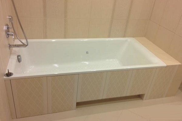 Согласно общепринятых строительных правил, стандартная высота ванны над уровнем пола составит 60-65 см., и рассчитан он с учетом среднего роста человека.
